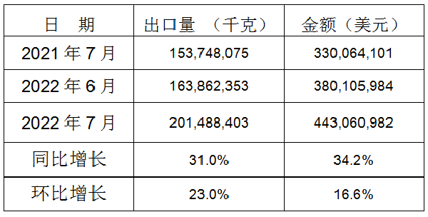 1-7月13个税号黑色铸件合计出口104.9万吨,同比增长9.2%。其中:7月份出口20.1万吨,同比增长31%,环比增长23%,见表2和表3。