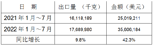 根据海关数据统计,2022年1-7月我国铸件出口总体保持增长,其中: