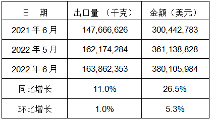 1-6月13个税则号黑色铸件合计出口84.7万吨,同比增长5%。其中:6月份出口16.4万吨,同比增长11.0%,环比增长1.0%,见表2和表3。